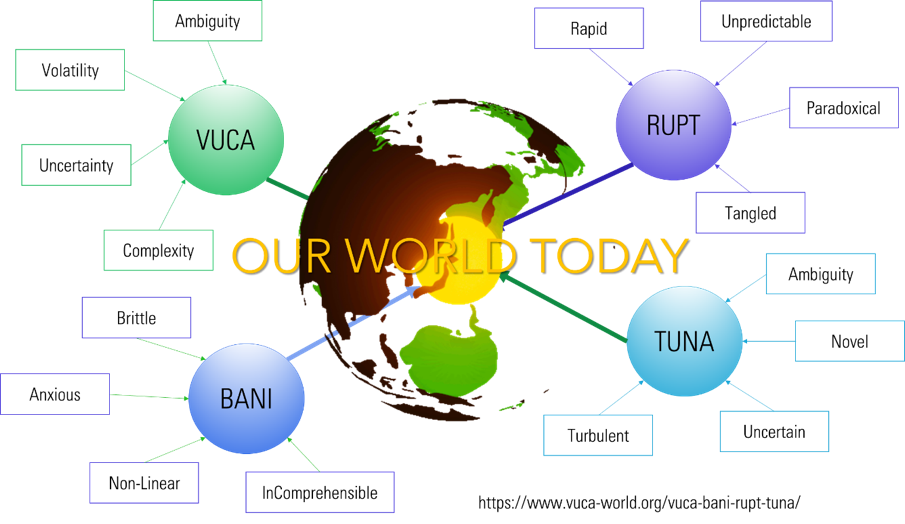 The contemporary world is marked by rapid transformation and deep uncertainty, often described through conceptual frameworks such as VUCA (volatile, uncertain, complex, ambiguous), BANI (brittle, anxious, nonlinear, incomprehensible), and RUPT (rapid, unpredictable, paradoxical, tangled). These frameworks reflect humanity’s growing sense of instability and disorientation. This has perhaps also contributed to the trending loss of faith and increasing depression across the spectrum of humanity.