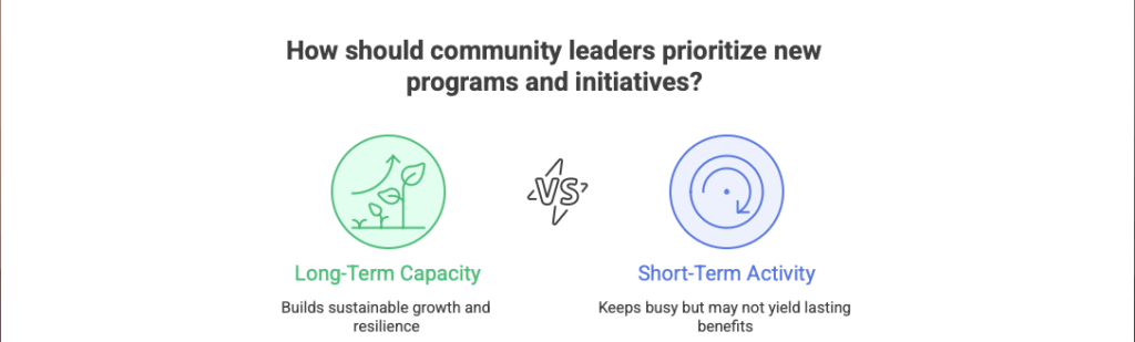• For the next year, before approving any new program or initiative, ask whether it builds our long-term capacity or keeps us busy.